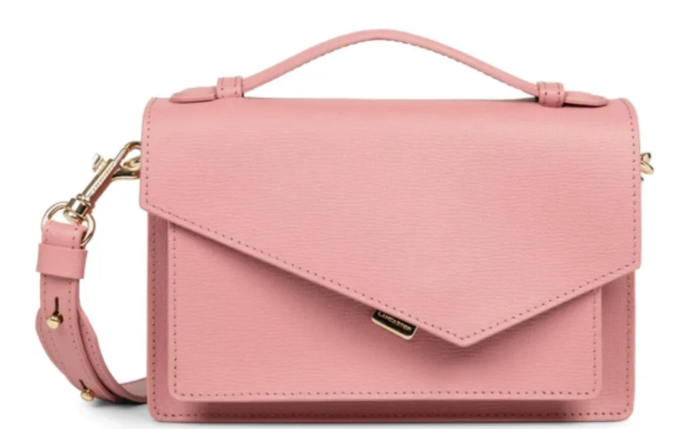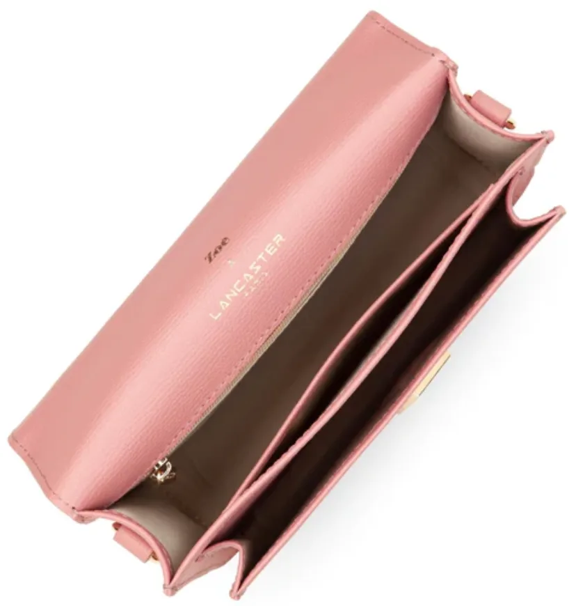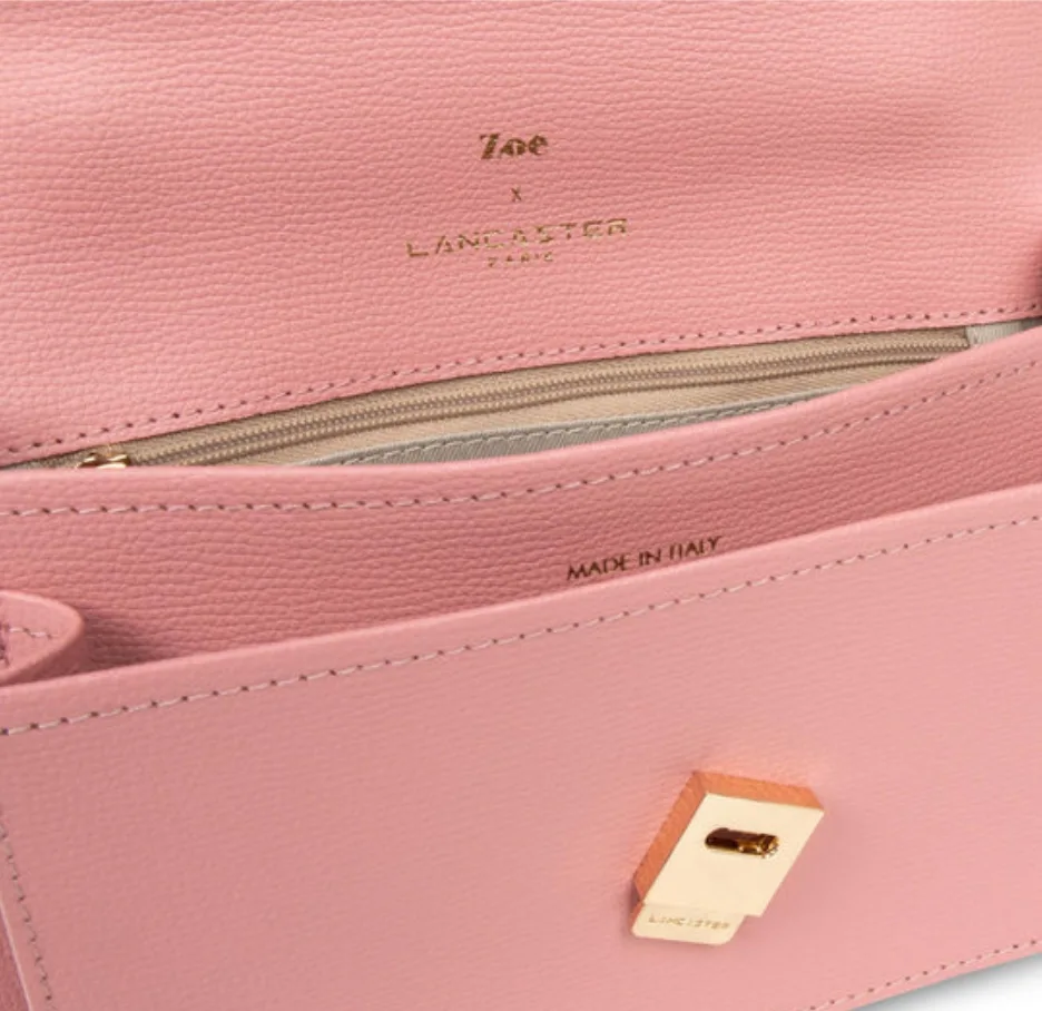 Ce nouveau sac trotteur Zoé.xLancaster est confectionné. de cuir recyclé.. Il .possè.de un rabat graphique .sur le devant avec une poche exté.rieure, une poche inté.rieur simple ainsi qu’une poche inté.rieure zippé.e.